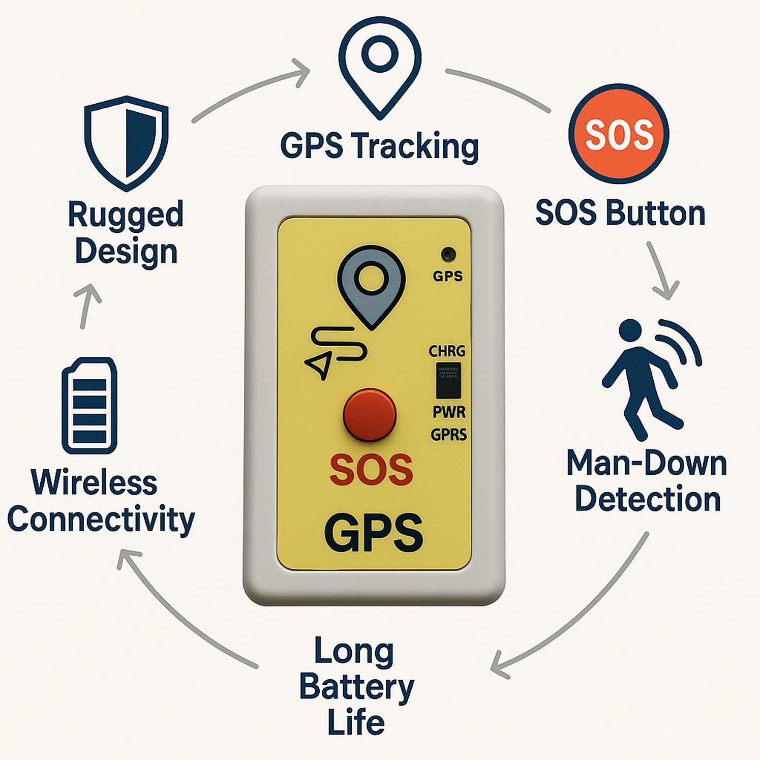 Designed to be worn discreetly or attached to clothing or gear, the tracker enables centralized monitoring, instant alerting, and seamless integration into your enterprise safety system.