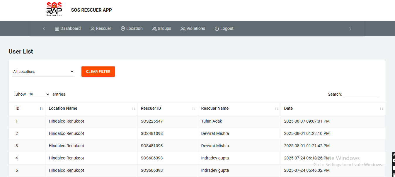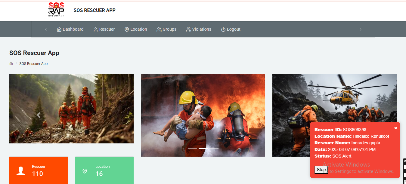 The SOS Rescue Application is a real-time emergency alert system designed to protect workers in industrial plants or field operations. It includes a Web-based Admin Dashboard and a Rescuer Android Application.
